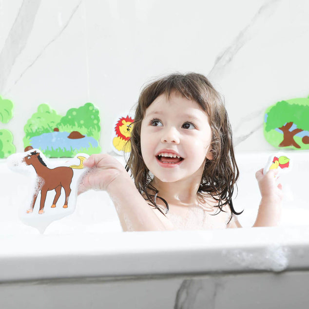 Transform the bathtub into a jungle with Edushape Magic Creations Jungle Fun! This unique Edu-foam bath toy features colourful animal illustrations that stick like magic to any smooth, flat surface when wet! Ensures that imaginations get a full workout while children have fun getting clean in the bathtub!